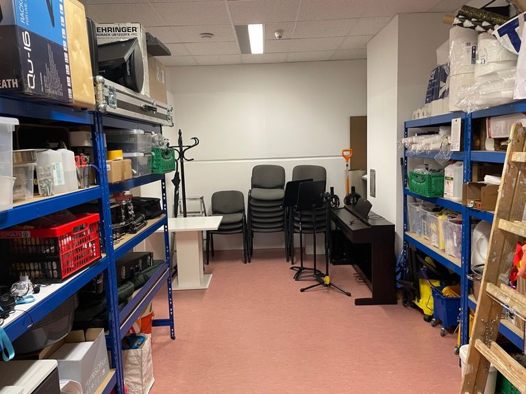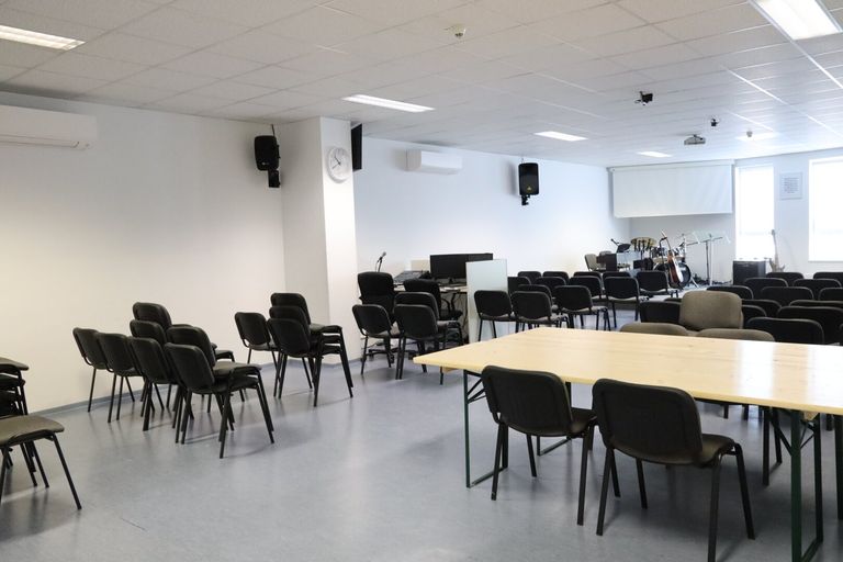 Der 112m² große Raum mit Beamer war bislang Vortrags- und Seminarraum.
