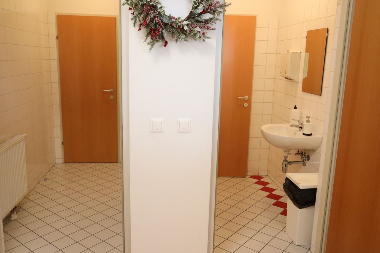 Bei Bedarf können die Räume z.B. in kleinere Behandlungszimmer untergliedert werden; das Magazin könnte z.B. auch als Dusche oder Umkleide genutzt werden.