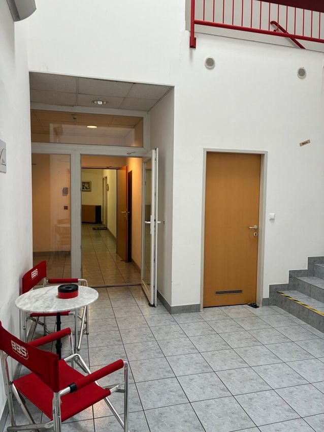 Es ist topgepflegt und sehr hell, mit einladendem Empfang, Pausenraum mit Teeküche (33m²) und 3 weiteren Räumen (112m² und 66m², jeweils mit großer Fensterfläche und 29m² Magazin)