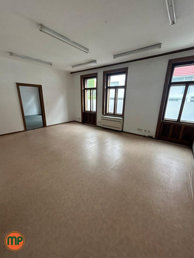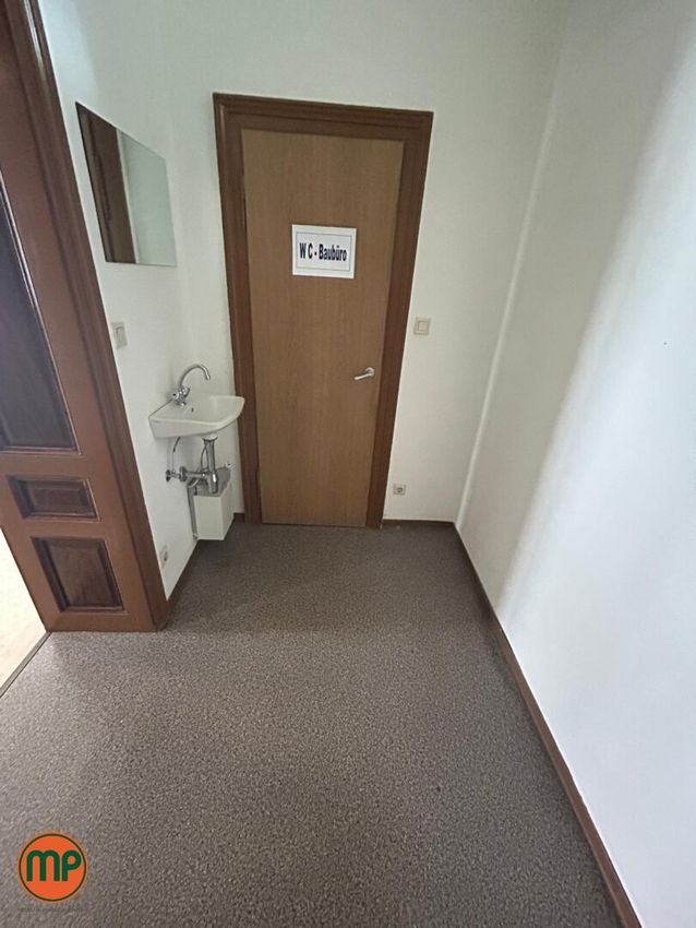 Bereits das großzügige Vorzimmer bietet viel Platz für Stauraum oder einen repräsentativen Empfangsbereich. Von hier aus gelangt man in einen größeren Hauptbürobereich und weiter in einen kleineren, separat abgetrennten Raum.