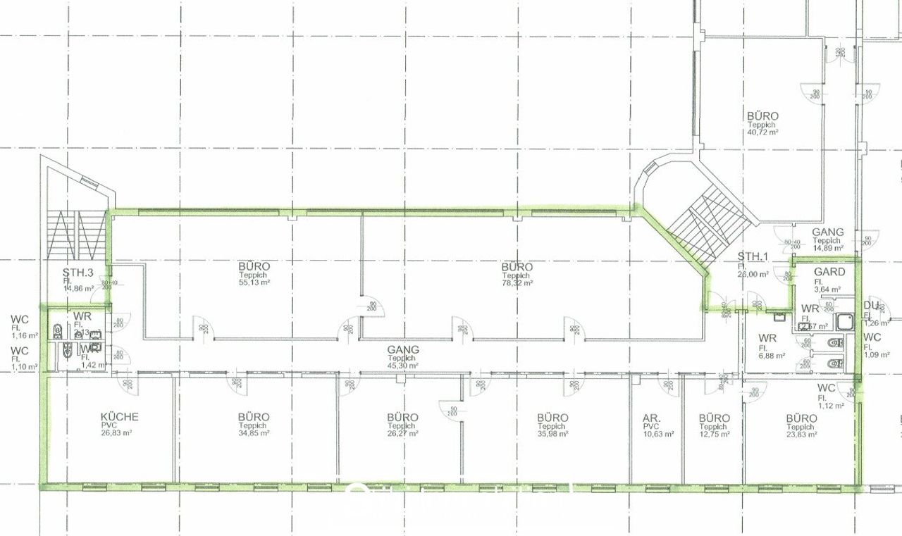 Bei Bedarf kann zusätzlich eine Bürofläche von ca. 90 m2 im 1. Stock (unterhalb) angemietet werden.