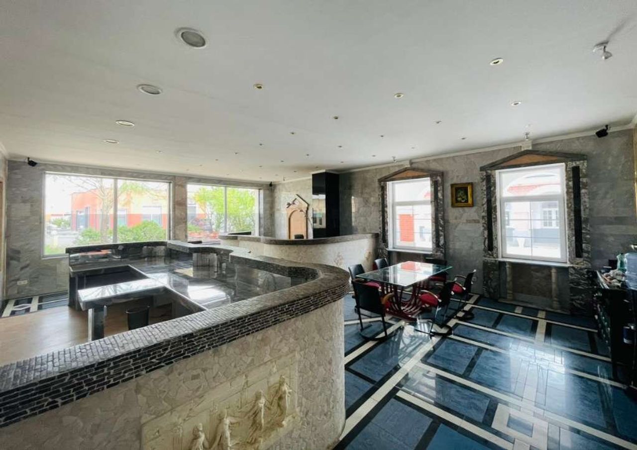 Das Büro präsentiert sich großzügig, lichtdurchflutet und repräsentativ. Es eignet sich ideal als Büro- oder Praxisfläche. Der Raum ist offen gestaltet und bietet durch seine große Fensterfront viel Tageslicht, was eine angenehme Arbeitsatmosphäre schafft.