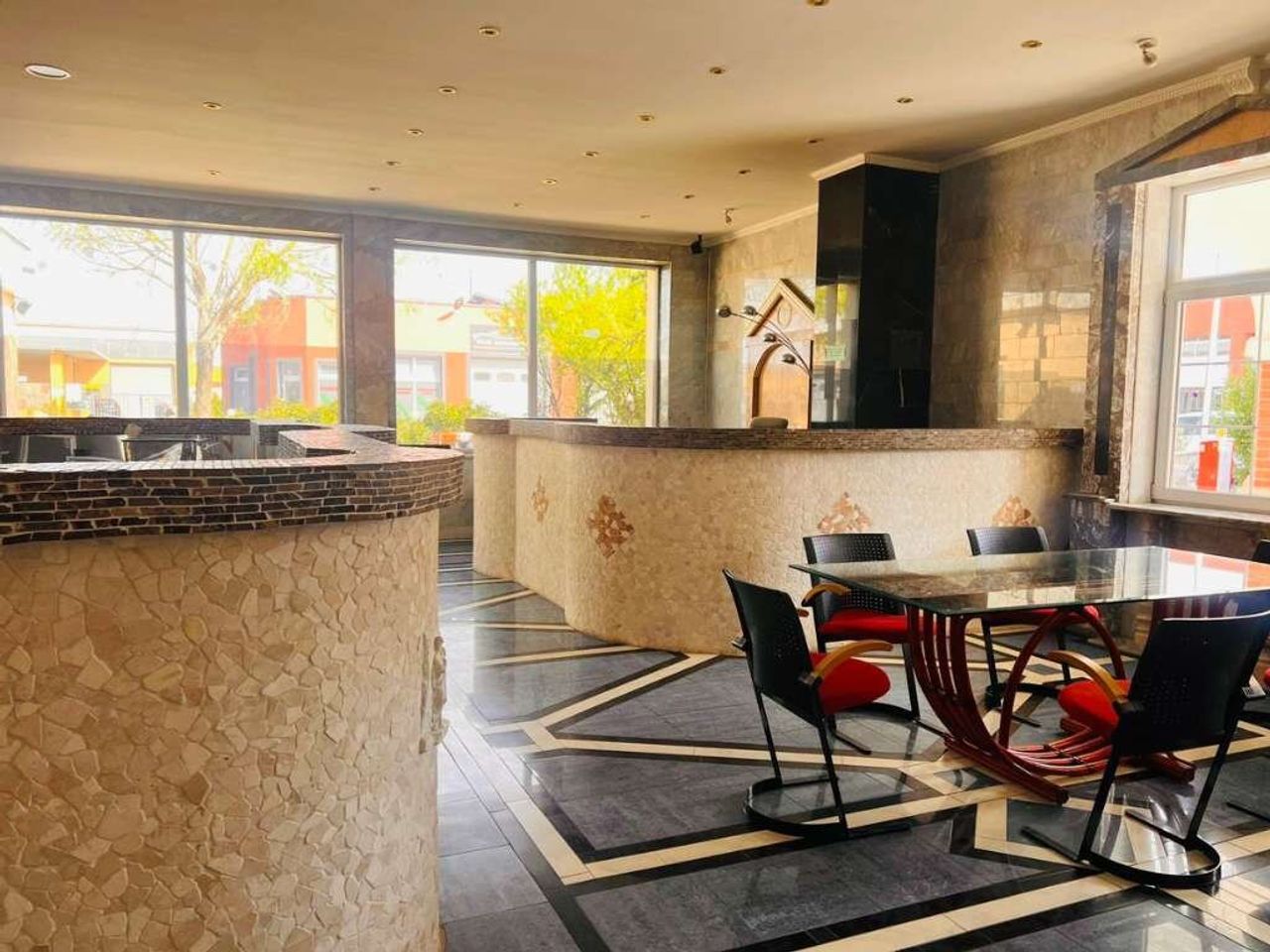 - Empfangsbereich oder Besprechungstisch mit mehreren Sitzplätzen