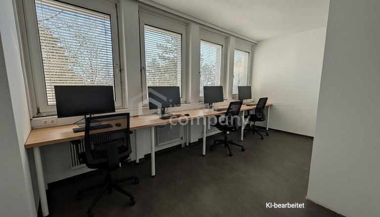 Dieses ca. 68 m² große Büro bietet viel Platz und überzeugt durch eine helle und angenehme Arbeitsatmosphäre. Die zahlreichen großen Fenster sorgen für viel Tageslicht und schaffen ein freundliches Umfeld zum Arbeiten. Bei Bedarf können die innenliegenden Jalousien genutzt werden, um den Lichteinfall individuell zu regulieren.