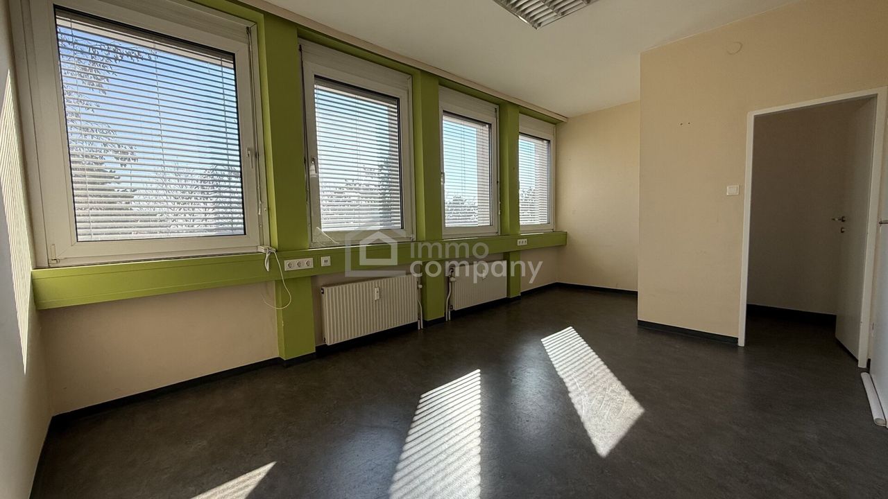 Dieses ca. 28 m² große Büro überzeugt durch seine sehr helle und angenehme Arbeitsatmosphäre. Dank vier großer Fenster gelangt viel Tageslicht in den Raum, was für ein freundliches und produktives Arbeitsumfeld sorgt. Bei Bedarf können die innenliegenden Jalousien einfach eingestellt werden, um den Lichteinfall individuell zu regulieren.