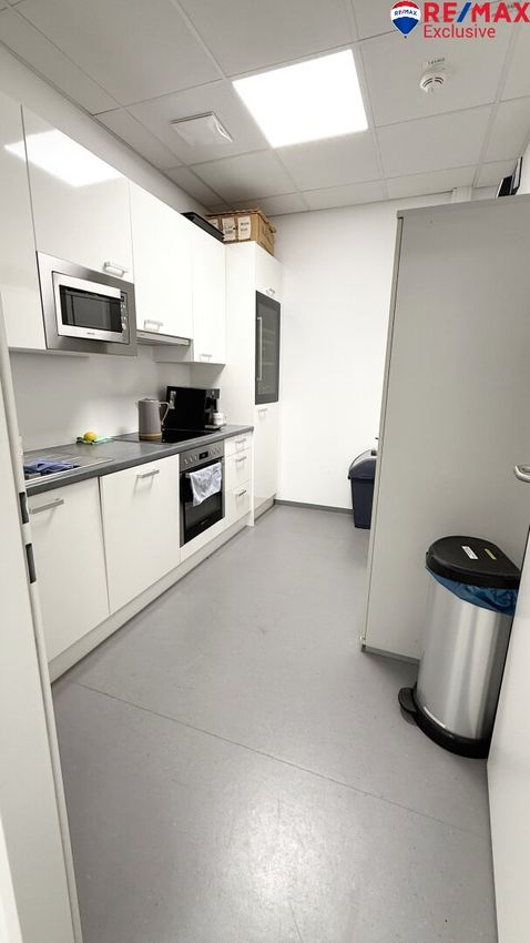 Das Büro im 1. OG verfügt über ca. 100 m² sowie einer Einbauküche.