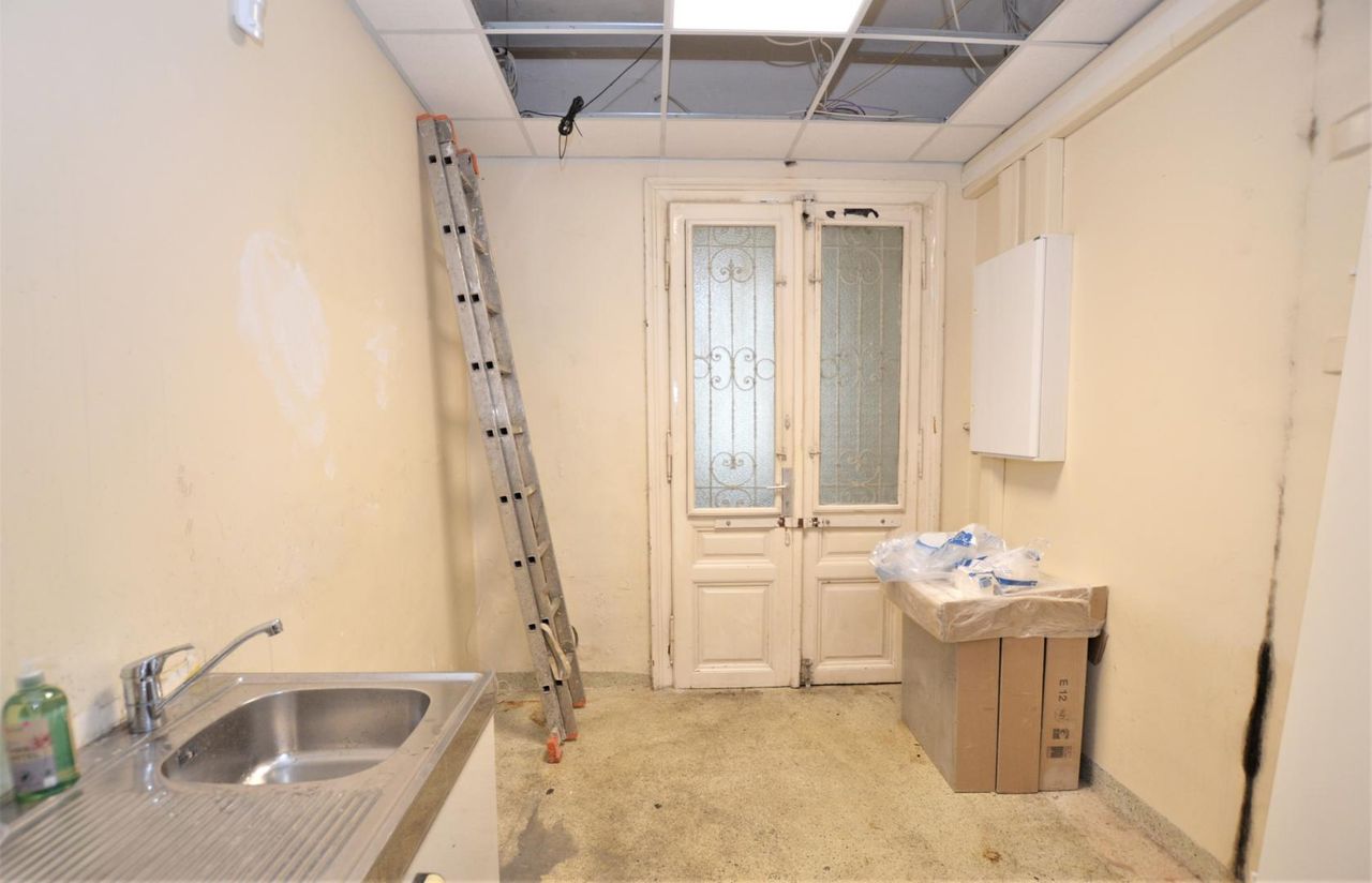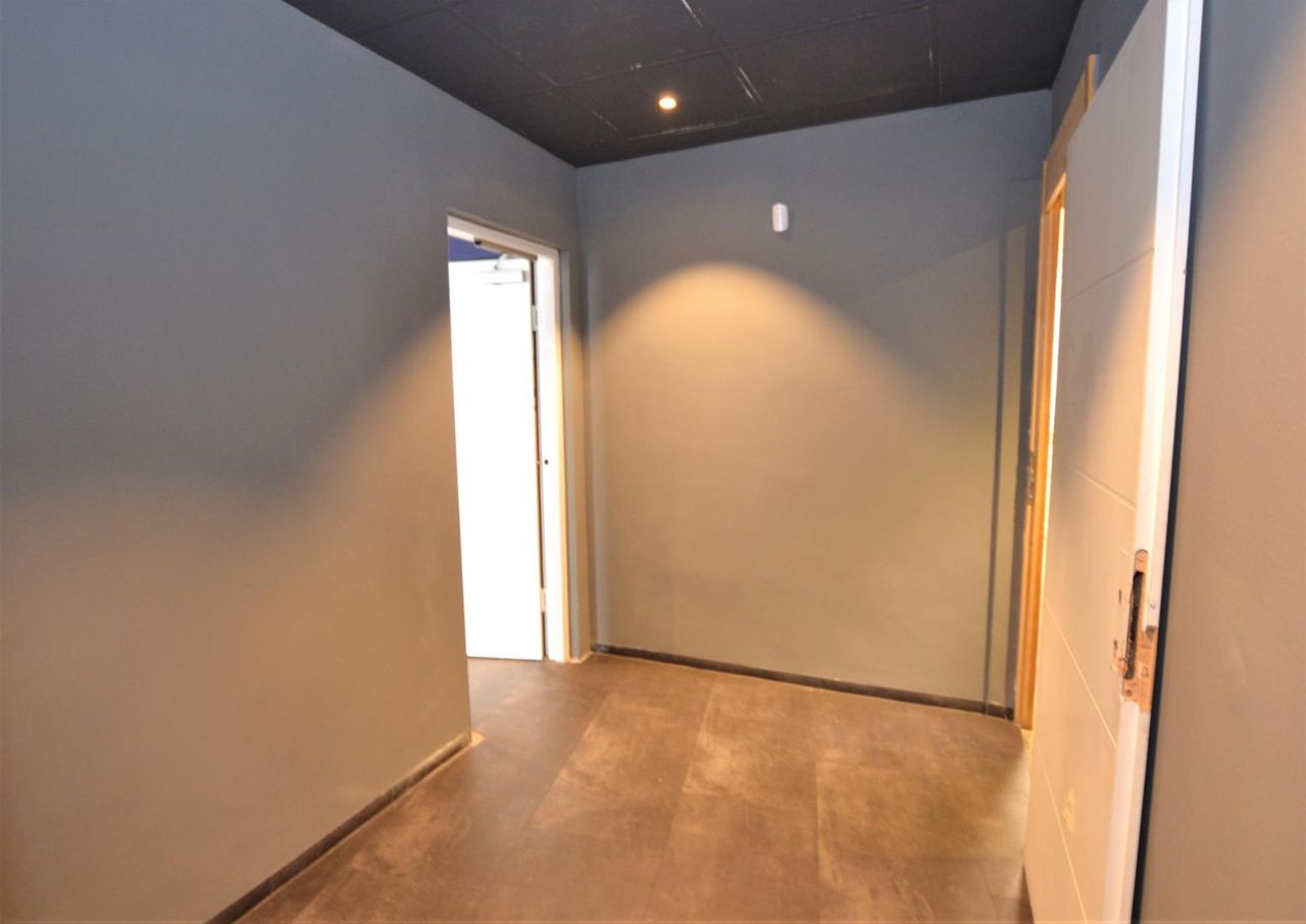 Im vorderen Bereich befinden sich zwei Haupträume, die sich ideal als Empfang, Verkaufsfläche, Schauraum oder Arbeitsbereich eignen. Des Weiteren gibt es noch einen Nebenraum, ein praktisches Lager, ein Abstellraum, eine Teeküche sowie separate Sanitäreinheiten für Damen und Herren – jeweils mit WC, das Herren-WC zusätzlich mit zwei Pissoirs.