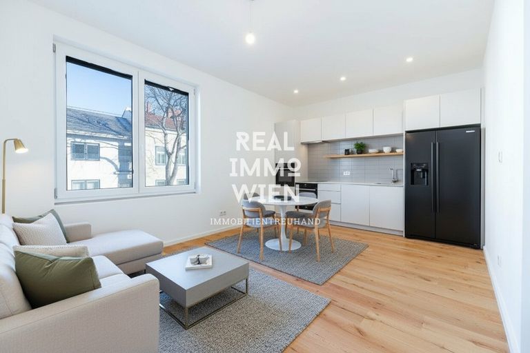 Zum Verkauf gelangen 16 topmoderne, schlüsselfertige Wohnungen mit Außenflächen (Garten, Balkon, Terrassen) sowie 1 Gechäftslokal und 9 Tiefgaragen-Stellplätze.