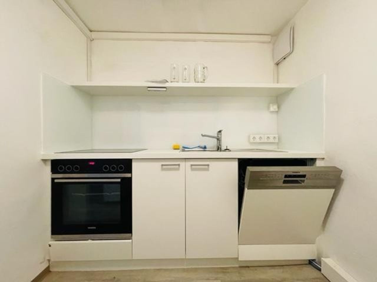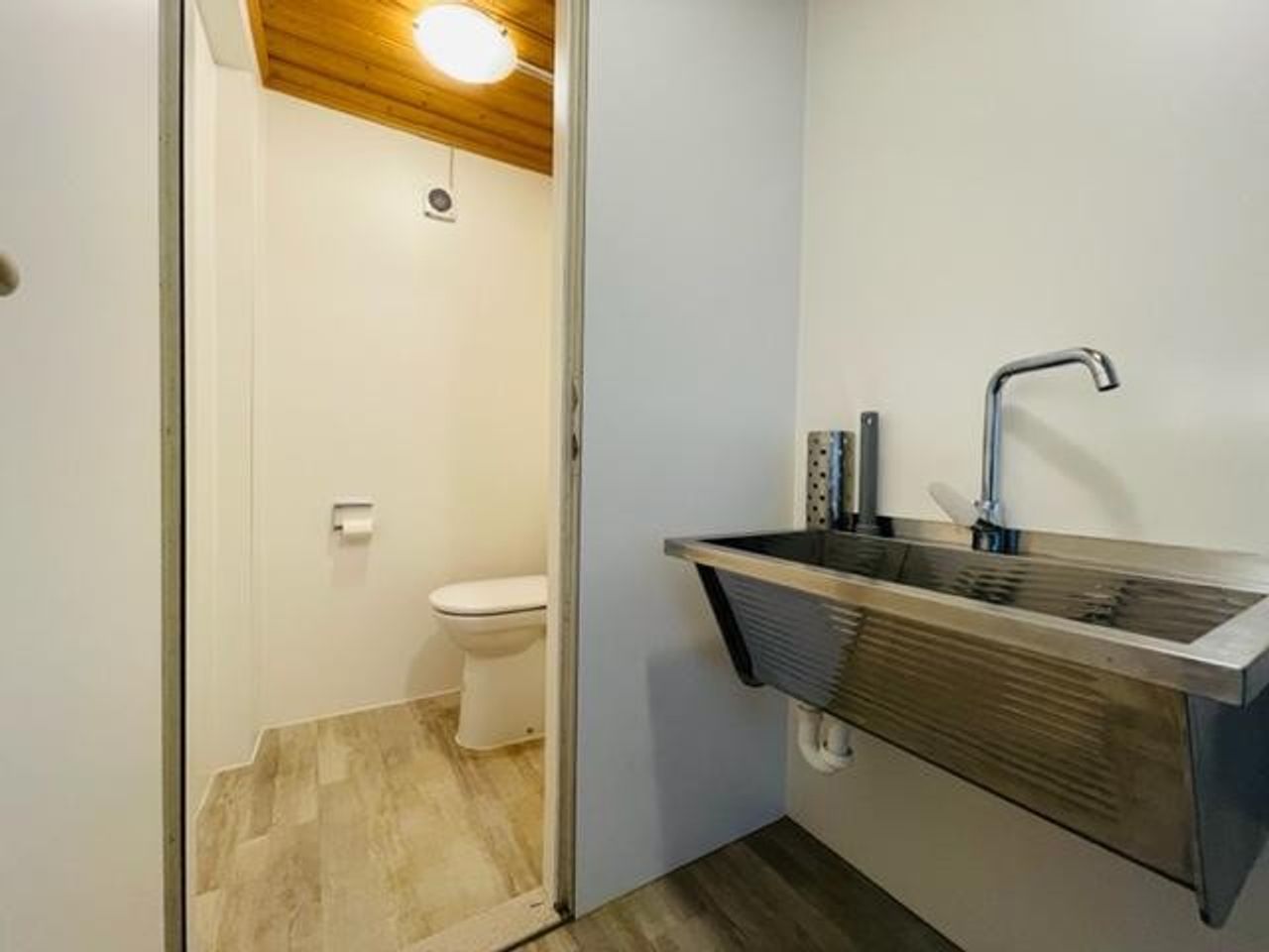 Im Back-Office-Bereich befindet sich ein Abstellraum, ein Büro, die Teeküche mit einem kleinen Lager und die Toilette mit Waschbecken.