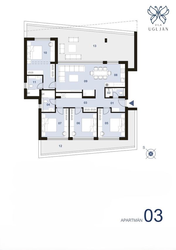 5-Zimmer-Apartments A3 / 1. Stock, gut aufgeteilt bietet: (Raumnummer in Grundrisse)