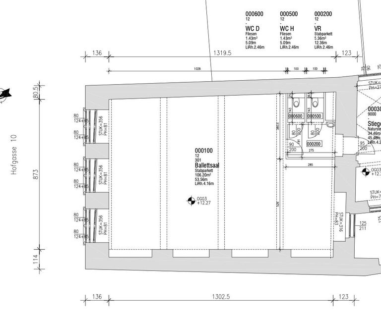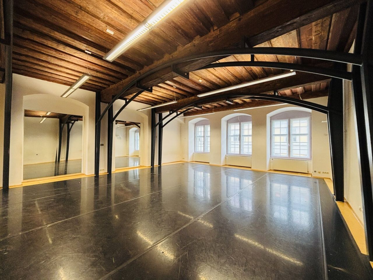 Willkommen in Ihrer einzigartigen Immobilie in zentraler Lage von Graz! Dieser beeindruckende Raum mit 119,72 m² im 3. Obergeschoss stammt ursprünglich aus dem Jahr 1620 und besticht durch historisches Flair, hohe Repräsentanz und eine Raumhöhe von 4,16 m – ideal für Yoga, Tanz- oder Fitnesskurse, Workshops, Seminare, exklusive Veranstaltungen oder andere vielseitige Nutzungen.