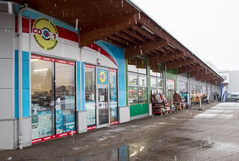 Dieses Lokal befindet sich im Gebäudekomplex des Fachmarktzentrums am Stadtrand von Kirchdorf an der Krems.