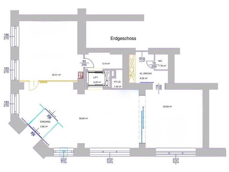 - Klimaanlage/Lüftungsanlage: im UG ist die Klima-/Lüftungsanlage (warm/kalt) für das EG untergebracht / ein Klimagerät für den nördlichsten Raum befindet sich im Hof