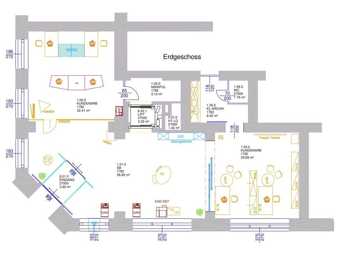 - UG: 1 Tresorraum, 3 Räume