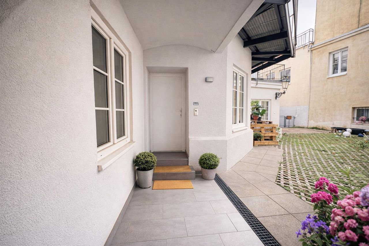 Ein zusätzlicher Mehrwert ist die ruhige Innenhof Terrasse. Sie eignet sich perfekt als Rückzugsort für Kunden oder als angenehme Pausenfläche für Mitarbeiter.