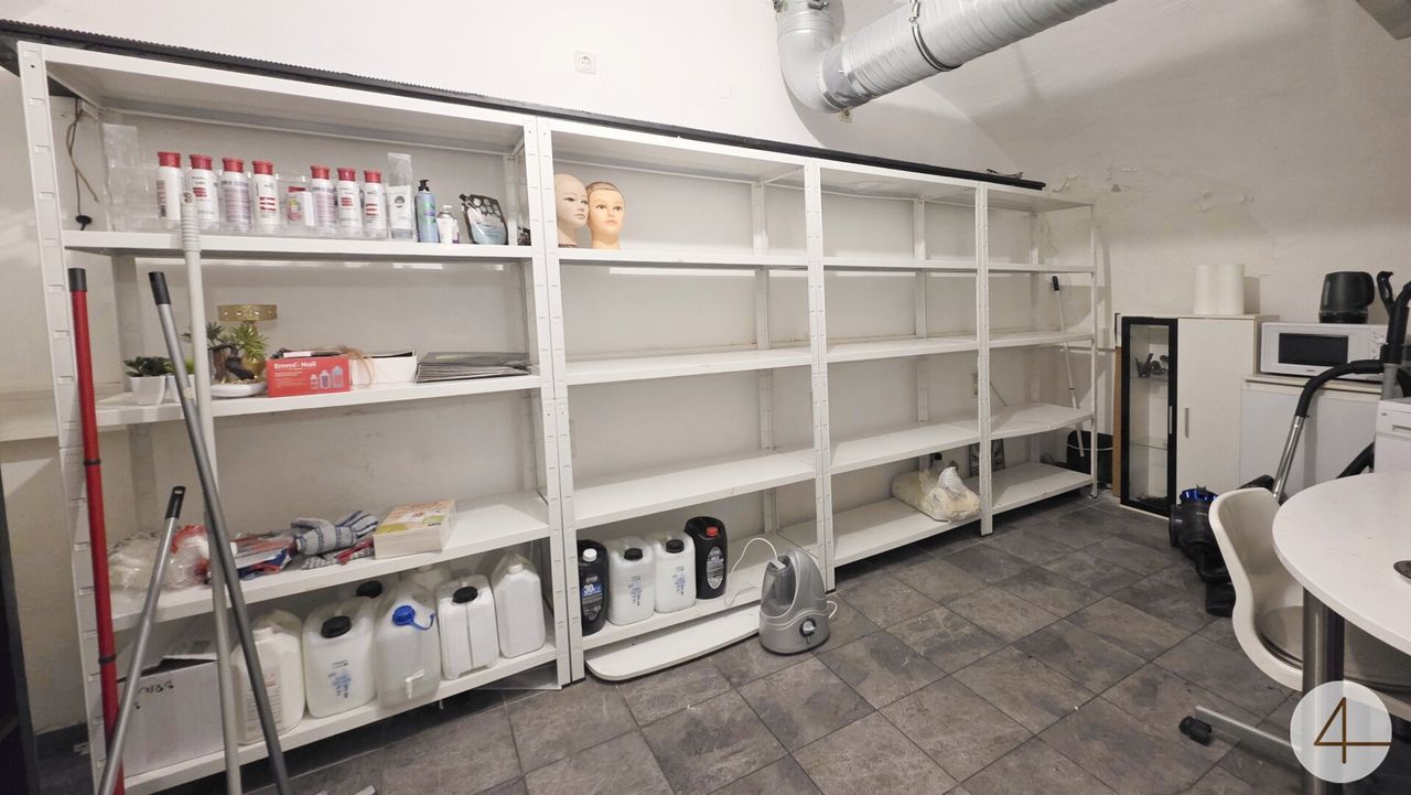 Toilette, einen zusätzlichen Raum für eventuell Kosmetik und einen Kellerraum mit ca. 60m2 der vom Lokal aus begehbar ist.