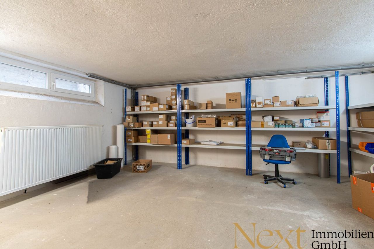 Zusätzlich ist ein Rolltor vorhanden, welches eine komfortable Anlieferung und Nutzung der Lagerflächen im EG (Garage) erleichtert. Vor dem Gebäude stehen drei Parkplätze für Ihre KundInnen und MitarbeiterInnen zu Verfügung und sind...
