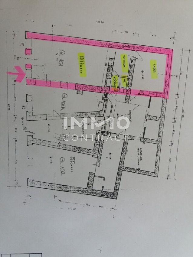 Das Objekt besteht aus einem großen Verkaufsraum mit 2 Auslagen, Lager und WC.
