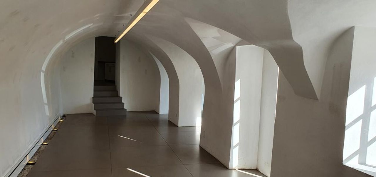 Das Erdgeschoß hell mit großen Glaselementen und im Untergeschoß ein ausgebautes fulminantes Kellergewölbe.
