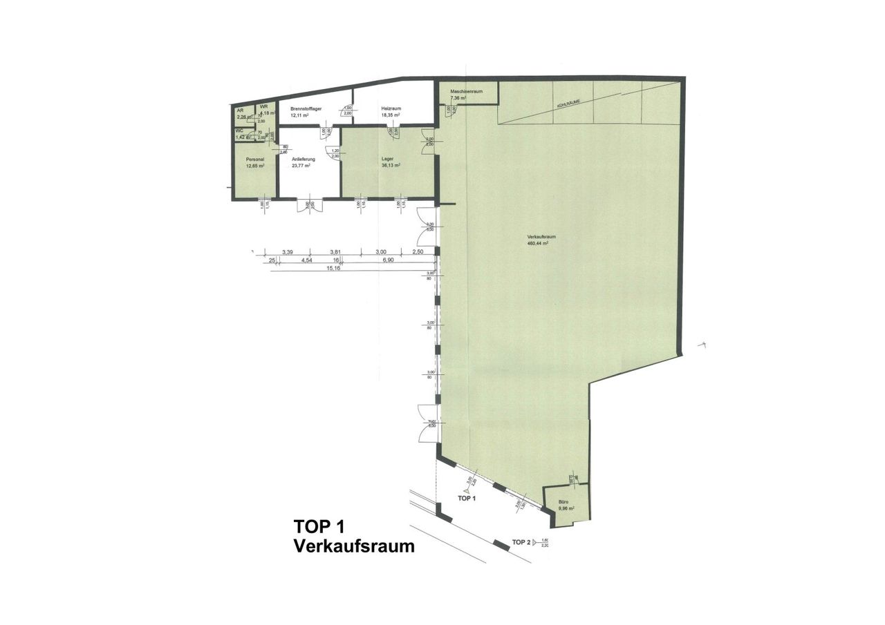 Die Verkaufsfläche kann optional um weitere 224 m2 erweitert werden.