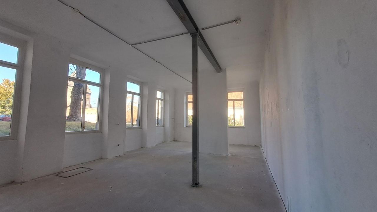 Durch einen Gang und Nebenräume geht es in den ehem. Turnsaal mit hohen Fenstern, ein lichtdurchfluteter Raum mit ca. 55 m².