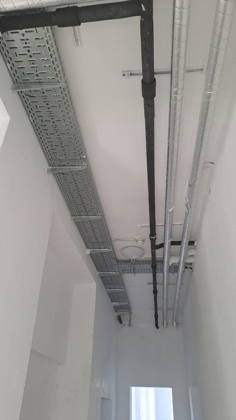 Straßenseitig ein Raum mit hoher Räumhöhe und Fenstern weit oben, dort befindet sich auch der Wasserzähler für das Haus.