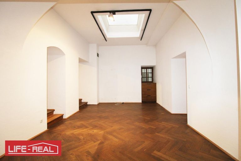 Das stilvolle Ambiente wird durch die charmanten Gewölbedecken und den hochwertigen Echtholzboden (Parkett) unterstrichen, die dem Raum eine einzigartige und elegante Atmosphäre verleihen. Eine Teeküche und eine Toilette sind ebenso vorhanden.