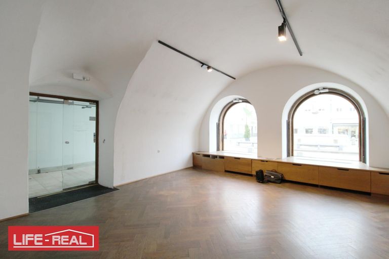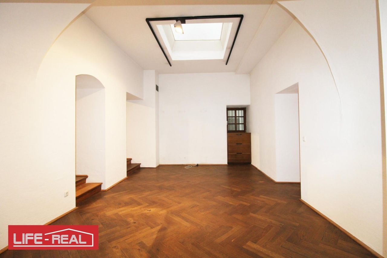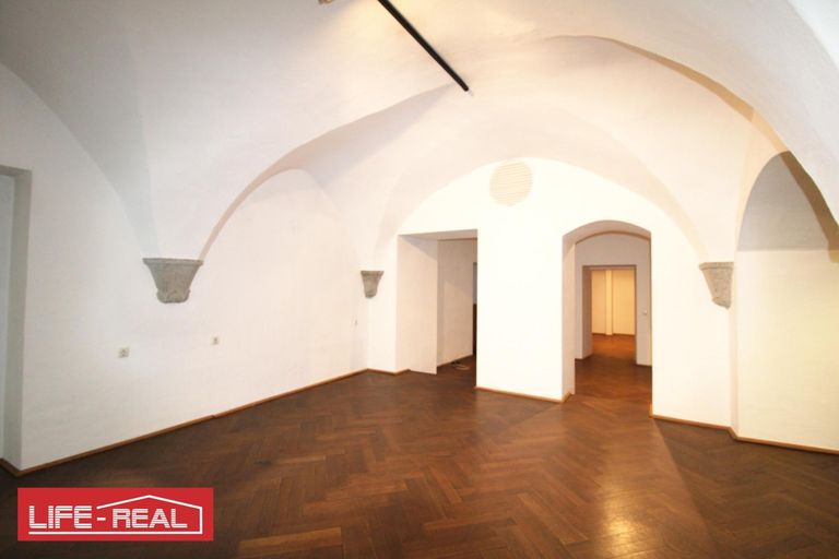 Das stilvolle Ambiente wird durch die charmanten Gewölbedecken und den hochwertigen Echtholzboden (Parkett) unterstrichen, die dem Raum eine einzigartige und elegante Atmosphäre verleihen. Eine Teeküche und eine Toilette sind ebenso vorhanden.