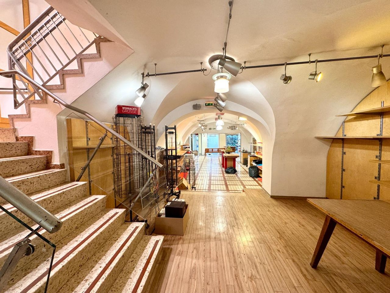 Die beiden Verkaufsebenen – zusammen etwa 366 m² – sind über eine interne Treppe miteinander verbunden. Für die obere Etage wurde bereits ein Mieter aus dem Bereich Mode gefunden. Der Haupteingang liegt direkt an der Fußgängerzone und überzeugt durch eine hervorragende Sichtbarkeit.