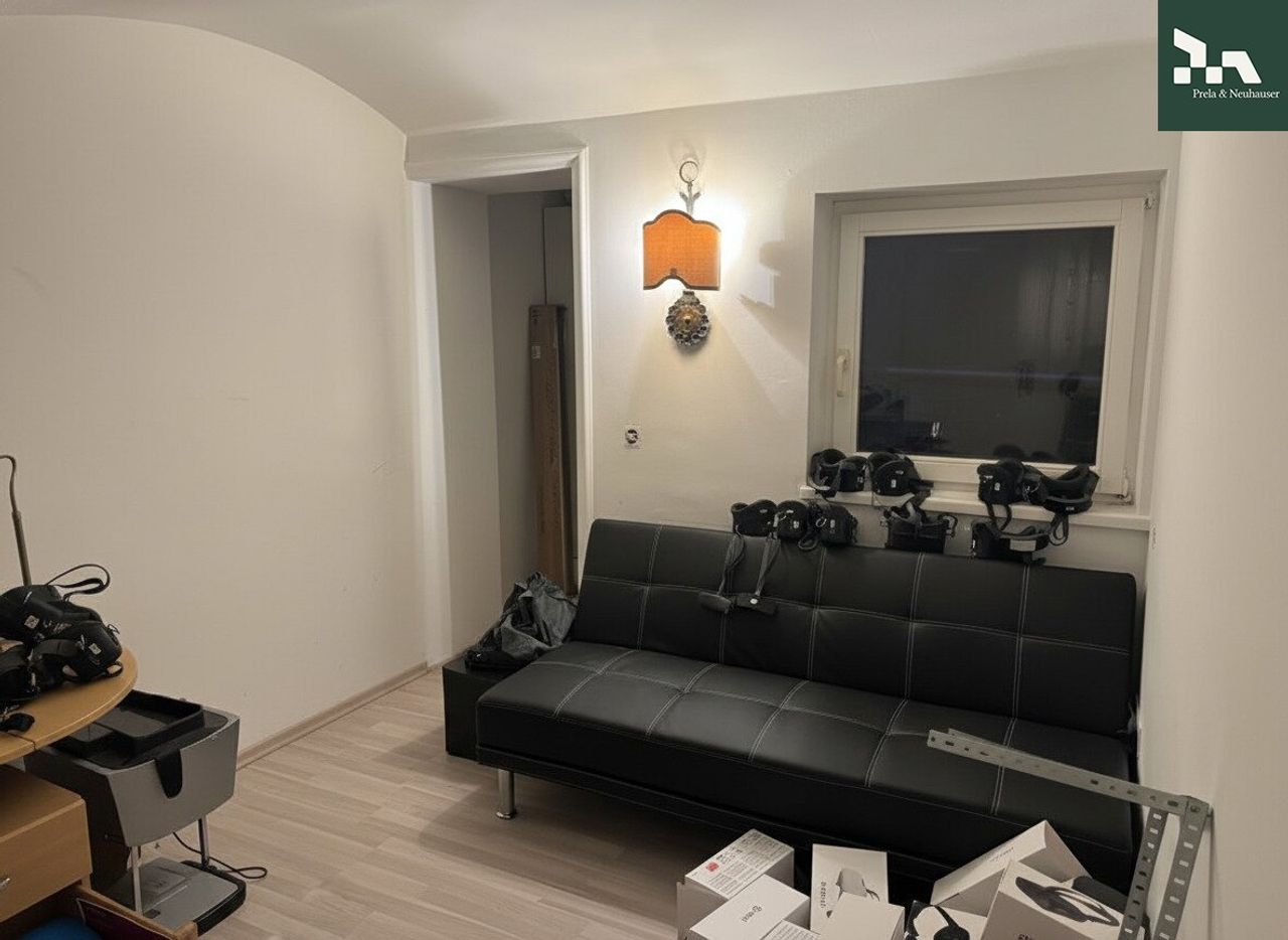 Im Erdgeschoß (1. Ebene), das sowohl straßenseitig als auch über den Innenhof betreten werden kann, befindet sich ein heller Verkaufsraum mit einem großen Portal sowie ein angrenzender zweiter Raum. Zusätzlich sind hier ein (Kunden-)WC sowie eine Teeküche vorhanden. Über die Treppe gelangt man in das Zwischengeschoss (2. Ebene), wo sich ein...