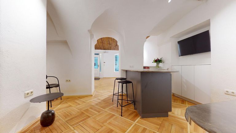 KUNSTGALERIE befindet sich im Erdgeschoss und besticht durch seinen einladenden Eingangsbereich, der Ihnen die Möglichkeit gibt, Ihre Produkte und Dienstleistungen optimal zu präsentieren. Der hochwertige Parkettboden vermittelt ein modernes und stilvolles Ambiente, das Ihre Kunden sofort in den Bann ziehen wird.