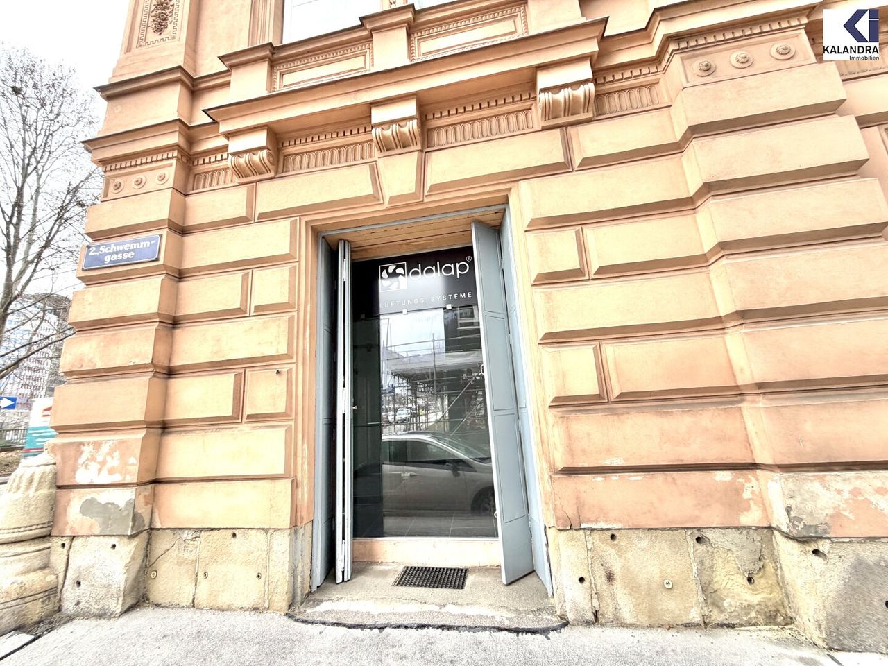 ECK- GESCHÄFTSLOKAL Dieses im Erdgeschoß eines Jahrhundertwendehauses gelegene Lokal mit direktem Straßeneingang gliedert sich wie folgt: Raumaufteilung: ein großer Geschäfts-/ Büroraum, der weiter teilbar wäre, ein zugeordnetes WC mit Waschraum ist unmittelbar über den stiegenhausseitigen Ausgang erreichbar. Ausstattung: - Bodenbelag: anthrazit-graue Fliesen-Platten - Gewölbestruktur - große Glasportale - Eingang mit Glas-Windfang - modern verfliestes WC - Cat 5-Verkabelung - Lichtschalter mit Bewegungssensoren - Hauszentralheizung (Fernwärme Wien) Ein monatlicher Akontobetrag für die Beheizung wird von Fernwärme Wien in Höhe von € 60,76 + 20% USt. gesondert vorgeschrieben. Infrastruktur: - werbewirksame Verkehrs-Frequenzlage am Donaukanal, - öffentliche Anbindung: - U-Bahn: U1-Station Nestroyplatz ist...