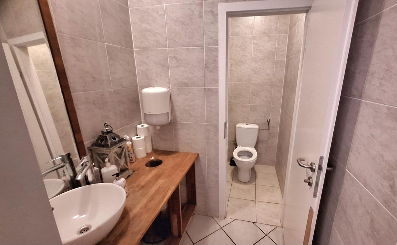 Neue WC Anlagen Damen und Herren Toilette und vorbereitete Behinderten Toilette.