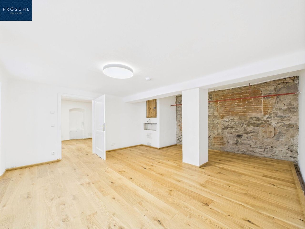 Die ca. 104 m² große Geschäfts- bzw. Bürofläche im Erdgeschoss wurde im Zuge einer umfassenden Kernsanierung mit größter Sorgfalt und unter Berücksichtigung des Denkmalschutzes revitalisiert. Dabei wurde die wertvolle historische Bausubstanz behutsam erhalten und mit modernster Technik harmonisch verbunden.