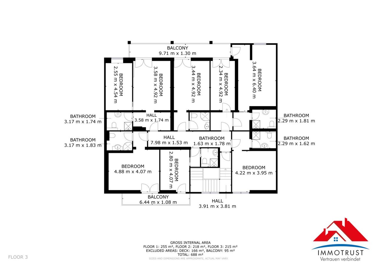 - Großzügige Außenflächen: Terrassen (166 m²) und Balkone (95 m²) laden Gäste zum Verweilen im Freien ein und bieten den perfekten Ort für Entspannung und Genuss.