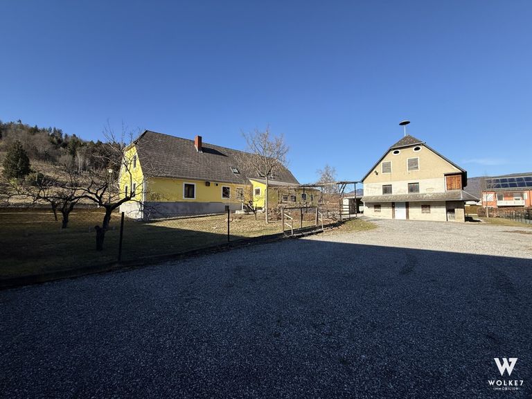 Zum Verkauf steht ein Gasthaus mit großzügigen Nebengebäuden auf einem rund 2.000m² großen Grundstück mit der Widmung Dorfgebiet 0,2- 0,5.