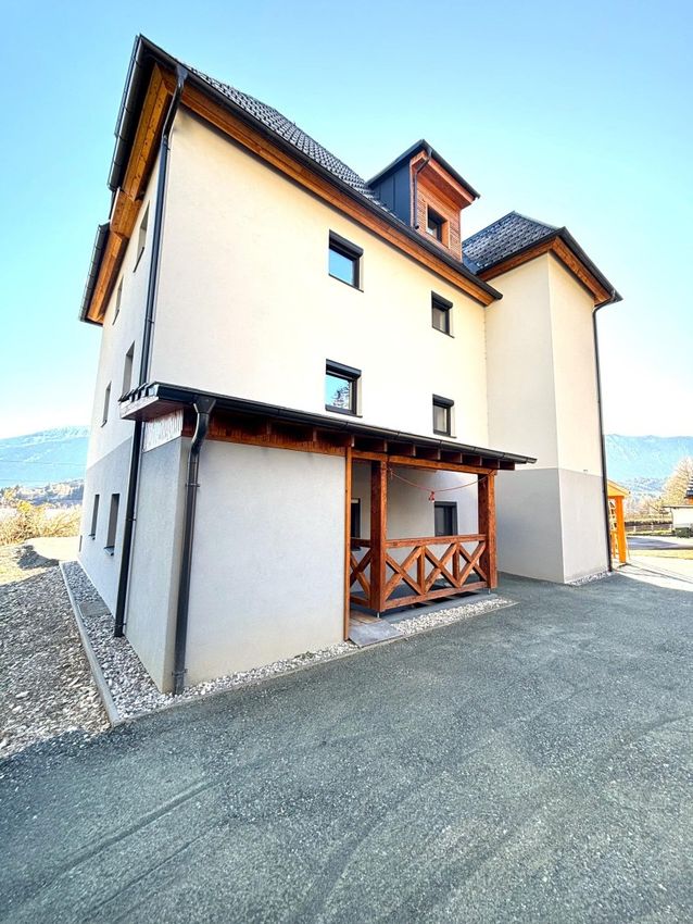 Soeben fertig gestellt und nagelneu! ist dieses Prachtexemplar einer Appartement- Anlage in Best- Lage! und unmittelbarer Nähe zum Presseggersee mit insgesamt fünf luxuriös und hochwertigst ausgestatteten Appartements mit einer durchschnittlichen Größe von ca. 65 Quadratmetern. Ein Appartement befindet sich separat in einem neu errichteten Bauwerk gleich neben der Hauptanlage und wäre fantastisch als Eigentümerwohnung geeignet. Selbstredend, dass alle Appartements durch die erhabene, leicht erhöhte Lage des Grundstücks eine feudale Sicht auf den Presseggersee und die Gebirgszüge des Kärntner Gailtals, somit die Karnischen Alpen, haben. Diese einzigartige Existenz- Gelegenheit wird voll betriebsfertig ausgestattet und geht in Kürze in den Erst-Betrieb! Wir befinden uns mit der Region "Presseggersee", der größten Schiregion Kärntens, dem "Nassfeld", der Region "Weissensee" in unmittelbarer Nähe, in einer der tourismusstärksten und nächtigungsstärksten Urlaubsdestinationen Österreichs! Die Saisondauer ist von Mai bis Oktober und Dezember bis März! Dafür garantieren Schi- Urlauber in den Wintermonaten, Bade- Urlauber, Wander- Urlauber und Erlebnis- Urlauber im Frühjahr, Sommer und Herbst. Zudem sind mit 10 asphaltierten Parkplätzen ausreichend Parkmöglichkeiten auf dem Grundstück vorhanden. Bus und Bahn sind zu Fuß in kürzester Zeit erreichbar. Der Schibus auf das "Nassfeld" fährt fast vor der Haustüre ab und wieder zurück! Das "Parkbad Presseggen" direkt am See ist nur etwa 200 Meter! entfernt und ebenfalls zu Fuß leicht erreichbar!