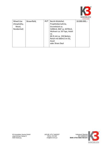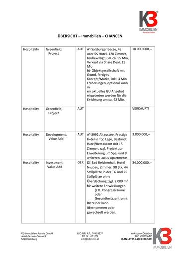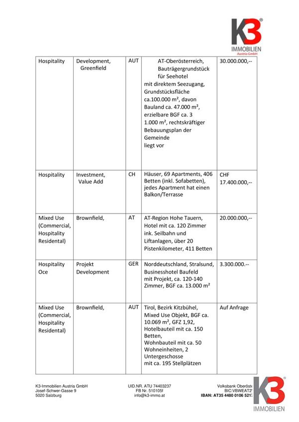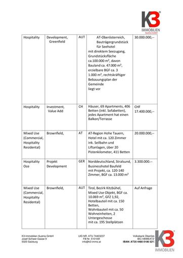 K3 - Österreich - Deutschland - Schweiz - INVESTITIONEN - HOSPITALITY