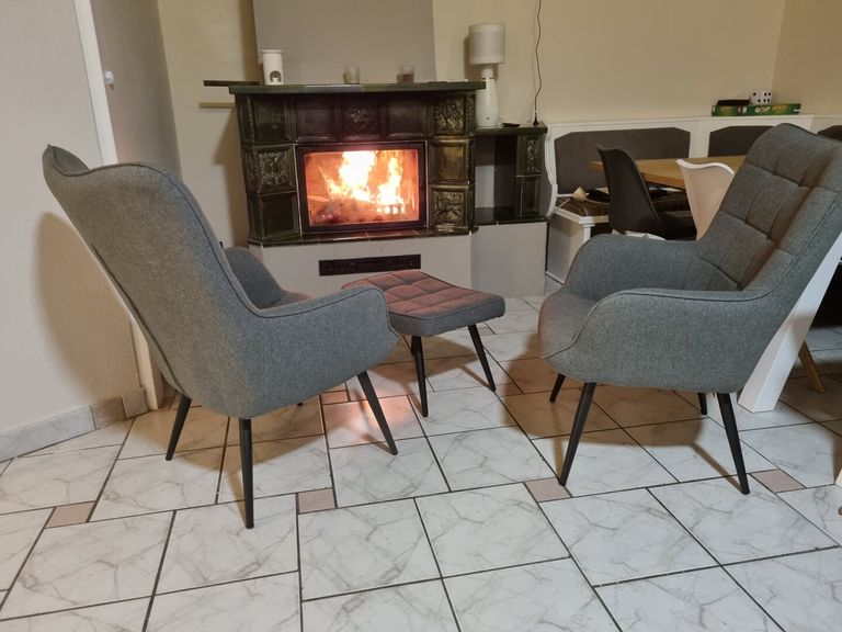 Der gemütliche Gemeinschaftsbereich mit einem Kamin lädt zum Verweilen ein und schafft eine warme Atmosphäre, die ideal für gesellige Zusammenkünfte und entspannte Gespräche ist. Hier können sich Gäste wohlfühlen und die Gemeinschaft genießen.