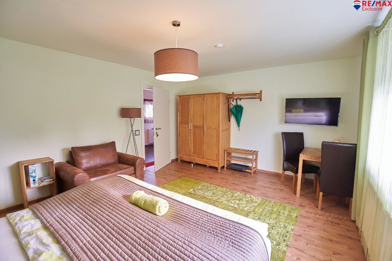 Mit einer großzügigen Fläche von 261,71 m² und vier hellen, einladenden Zimmern und einem Apartment ist diese Pension perfekt für Gäste geeignet, die die Ruhe und Schönheit der Umgebung genießen möchten. Die harmonisch gestalteten Räume schaffen eine Wohlfühlatmosphäre, die Ihre Gäste begeistern wird.