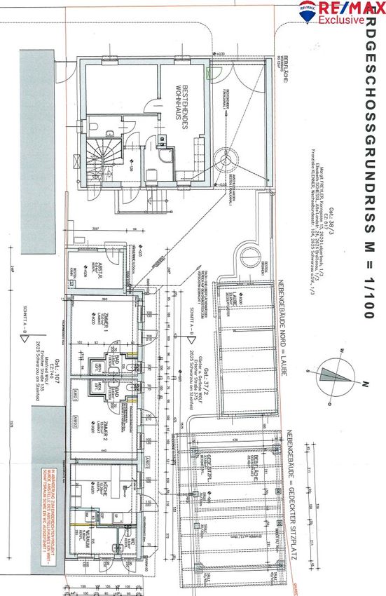 - Gesamtfläche von ca. 261 m² aufgeteilt auf 5 Zimmer in 2 Gebäuden sowie 2 Nebengebäuden