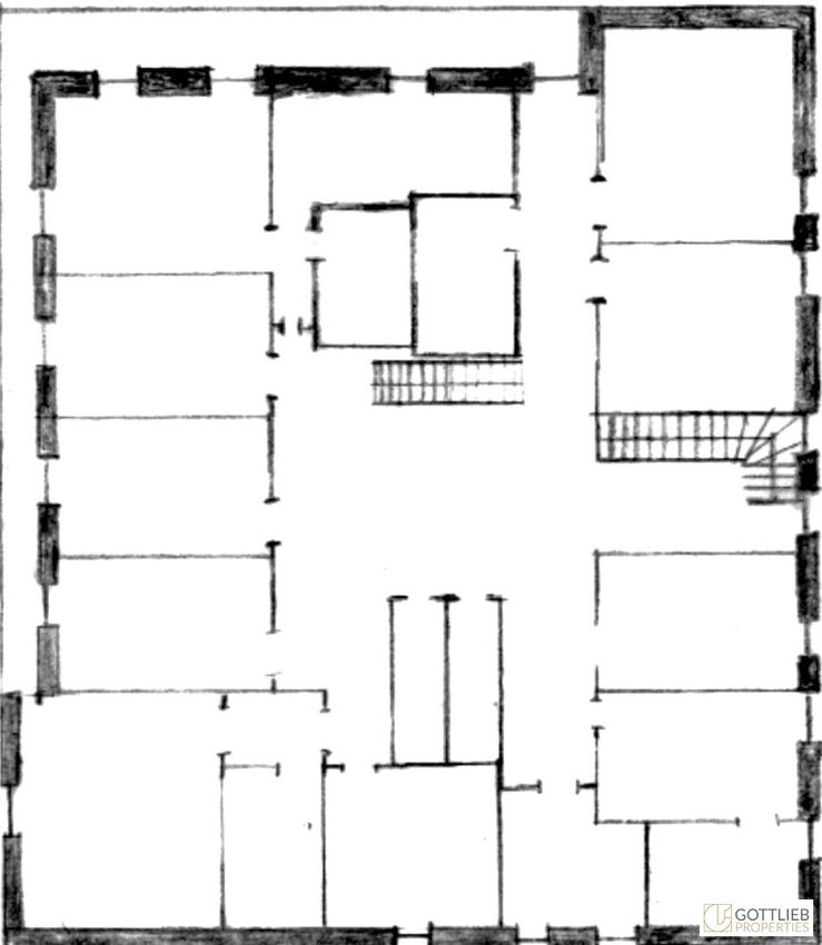 Im ersten Obergeschoss gelangt man in ein Gästezimmer, sämtliche Büros, private Räumlichkeiten sowie zu den Personal-Zimmern.