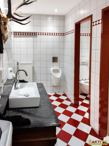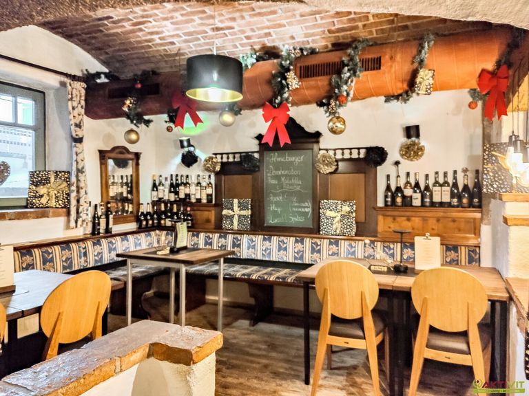 Der gastronomische Betrieb befindet sich im Kellergeschoss des Gebäudes und ist über einen eigenen Zugang erreichbar. Die Nutzfläche von rund 234 m² verteilt sich auf mehrere Gasträume, einen Spiel- bzw. Zusatzraum, Lagerflächen, Kühlräume, Vorbereitungsbereiche sowie Sanitäranlagen.