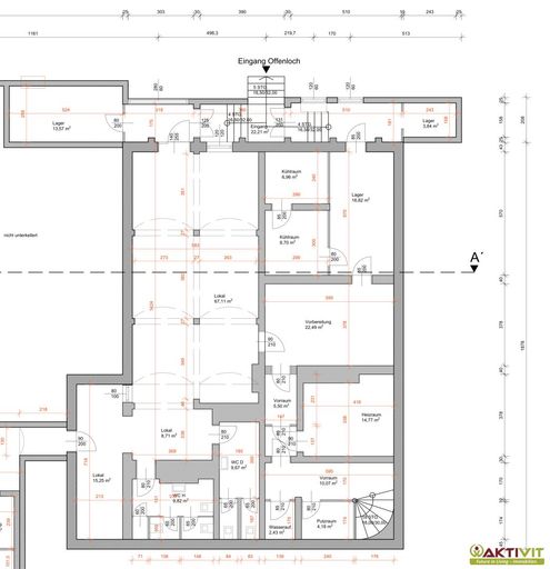 Untergeschoss-Lokal in massiv errichtetem Wohn- und Geschäftshaus