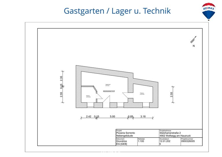 Der Gastgarten ist unterkellert; im darunterliegenden Bereich befinden sich der Heizraum sowie zusätzliche, praktische Lagermöglichkeiten.