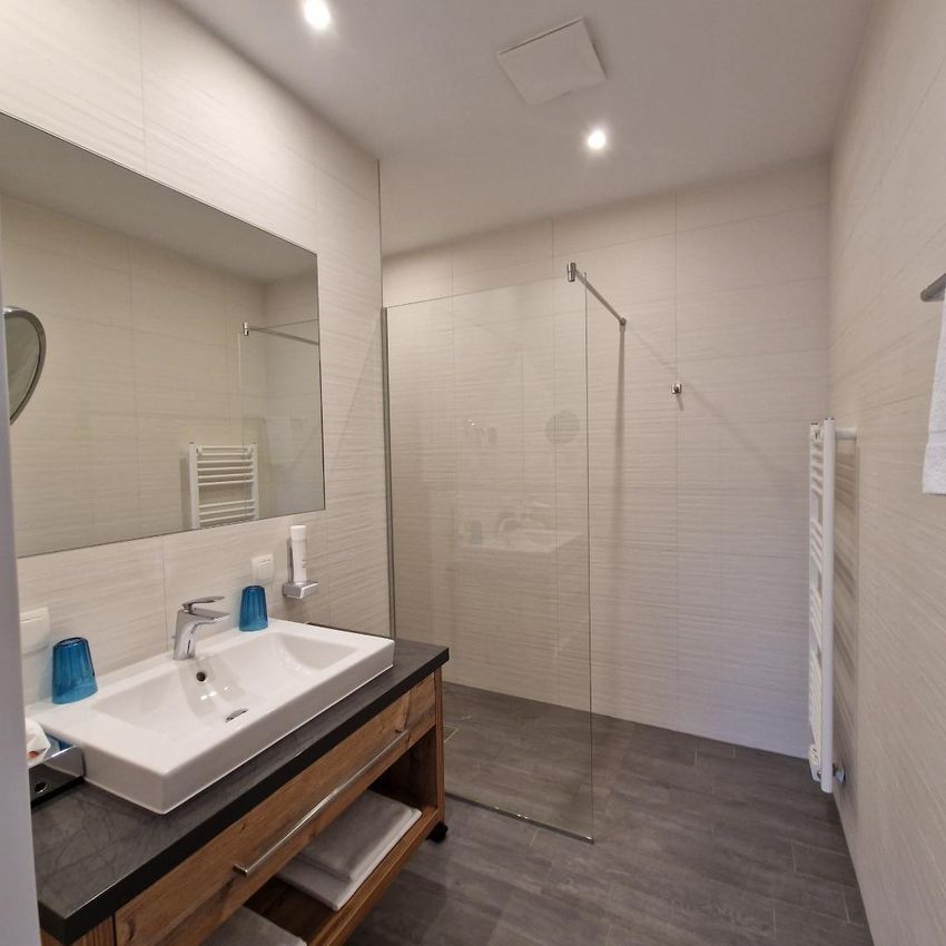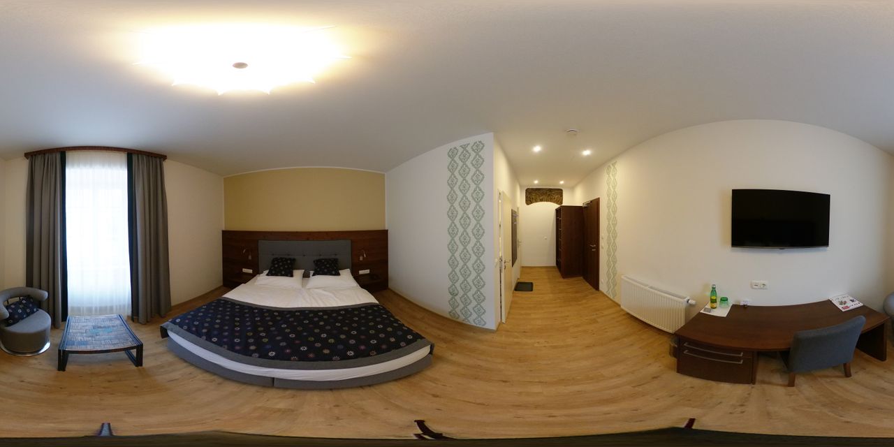 Im Obergeschoss befinden sich auf ca. 225 m² Nutzfläche sechs Doppelbett-Fremdenzimmer. Diese wurden vollständig saniert, einschließlich neuer Badezimmer und WC-Anlagen.