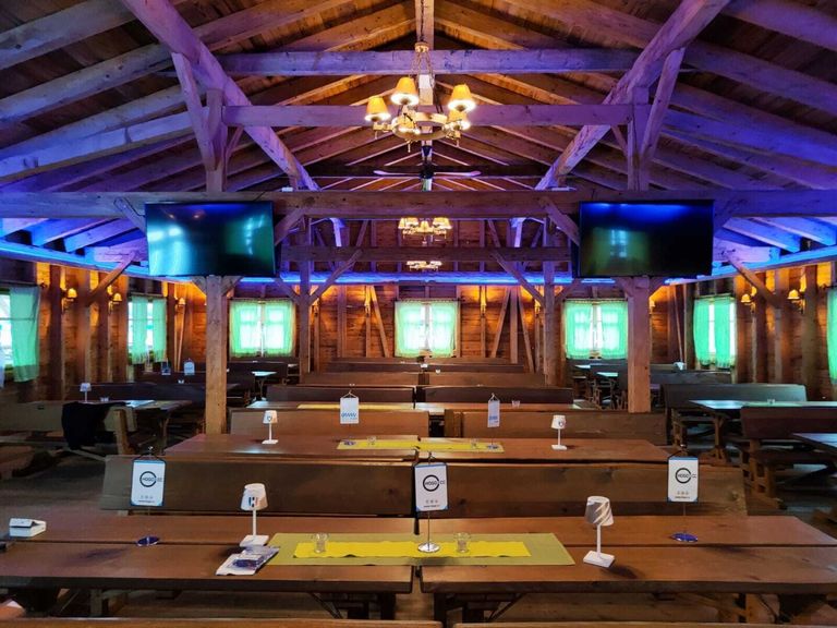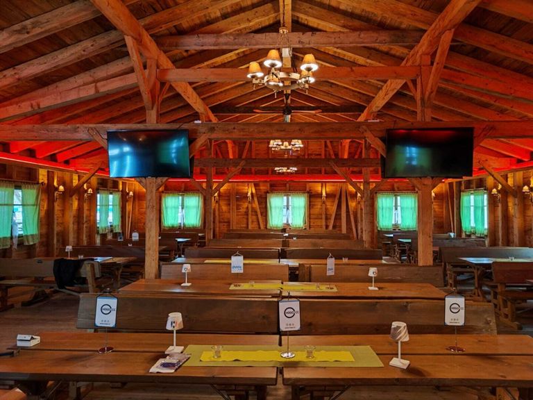 - Große Terrasse: Überdacht, mit 100 zusätzlichen Steh- und Sitzplätzen (Hochtische & Barhocker)