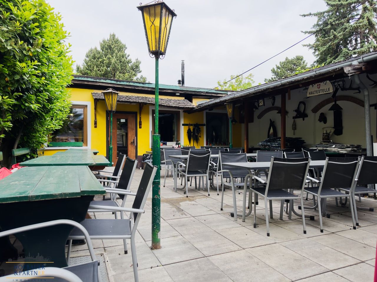 Im Außenbereich bietet der Schanigarten mit Platz für etwa 50 Gäste ein großes Potenzial für saisonale Bewirtung und Veranstaltungen unter freiem Himmel. Die Fläche eignet sich ideal für einen klassischen Gastgarten, aber auch für moderne Konzepte wie Streetfood, Pop-ups oder kleinere Events.