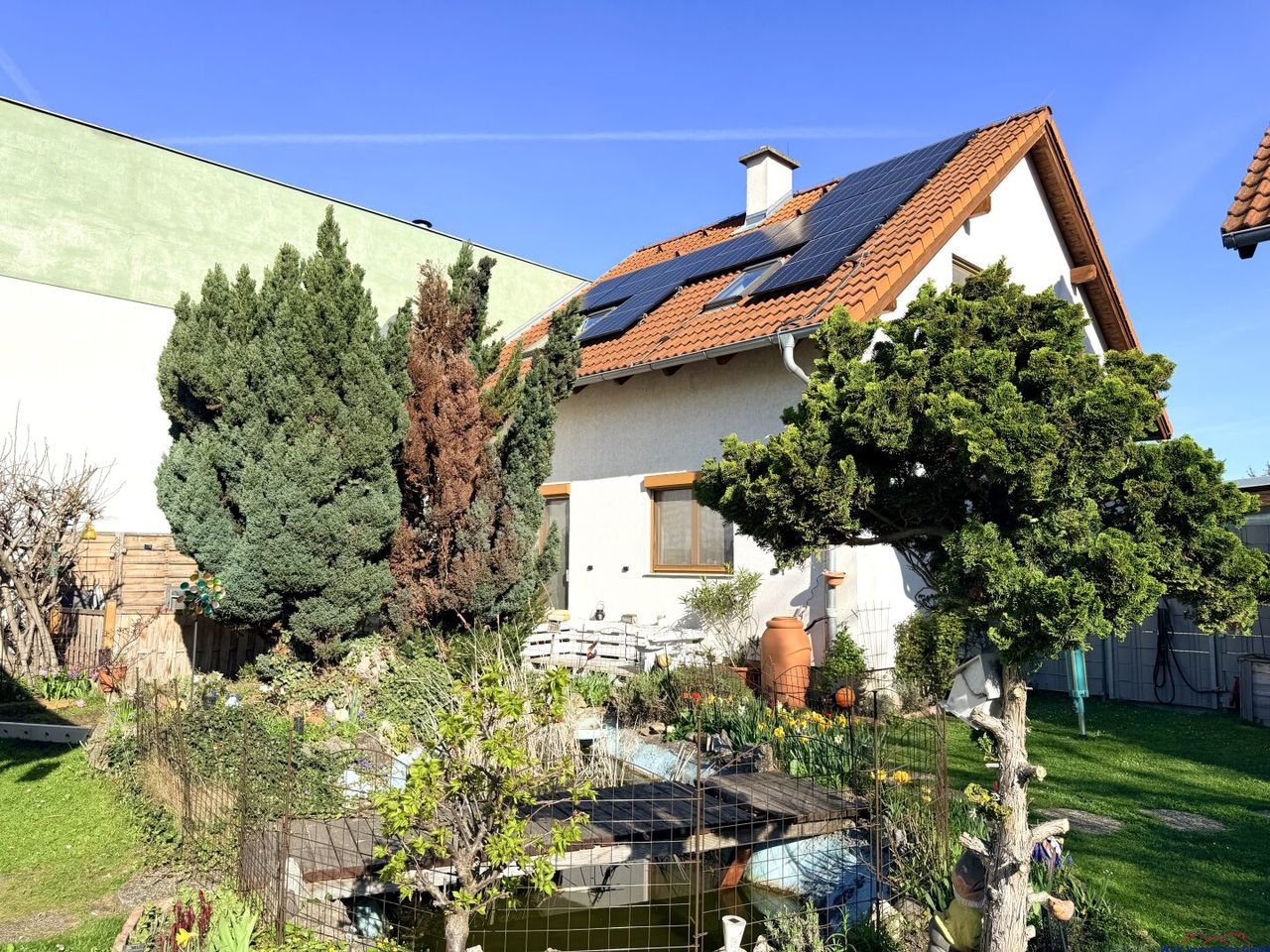 - 2 vollmöblierte Häuser mit jeweils rund 111 m2 (Vorraum, Wohnzimmer mit offener Küche, Speis, Schlafzimmer, 2 Kinderzimmer, Schrankraum, Bad und 2 Toiletten sowie diverse Kellerräume)