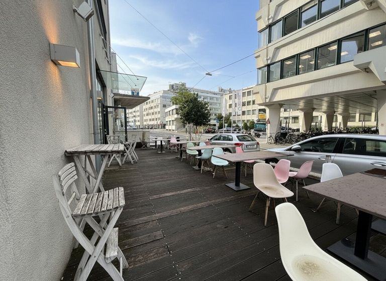 Das bestehende Interieur (Tische, Ausstattung, Bäckereitheke etc.) kann auf Wunsch übernommen werden, alternativ wird die Fläche leer übergeben.